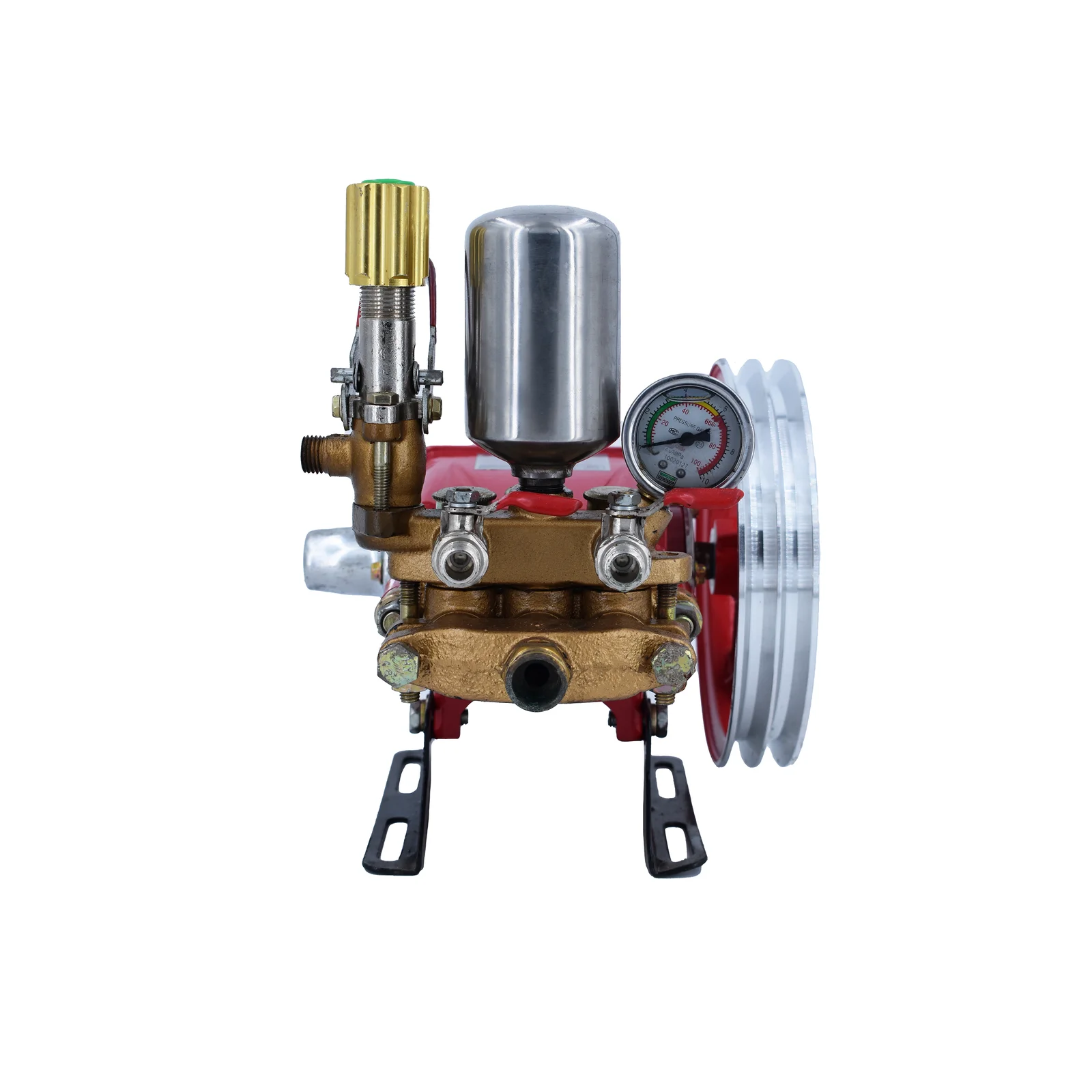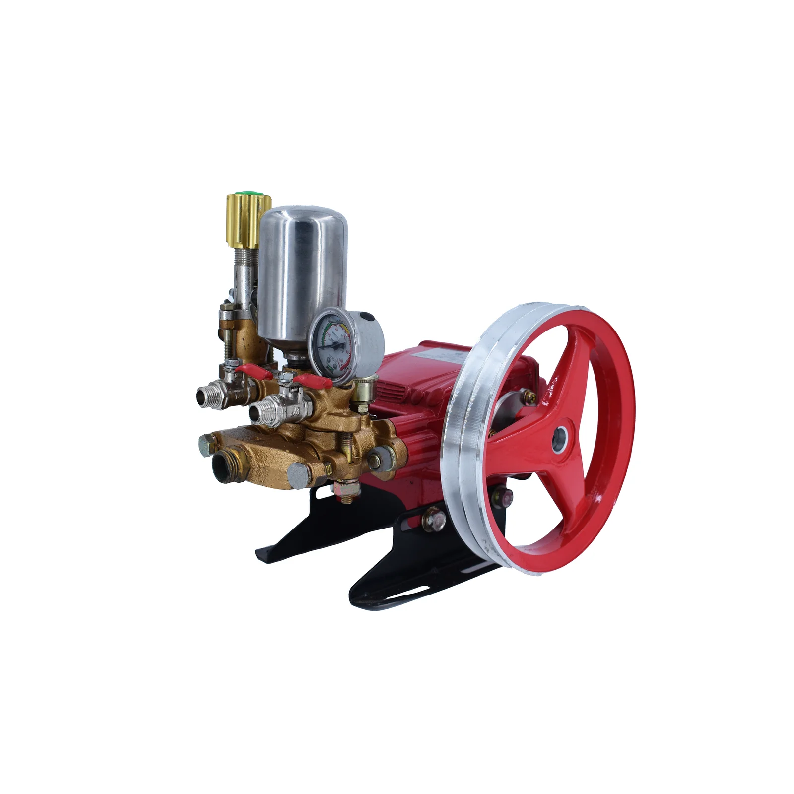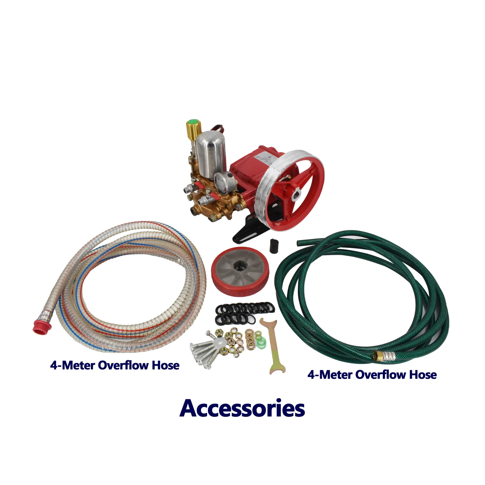 This high performance power sprayer pump with 20-30 kg/cm² Pressure, 800 RPM, 8.5-11 (l/min) Suction ideal for agriculture, fogging, irrigation, and vehicle washing. Powered by a 0.6-1HP motor. Comes with a tay hose, non-hose, overflow hose, pressure gauge, and efficient operation.