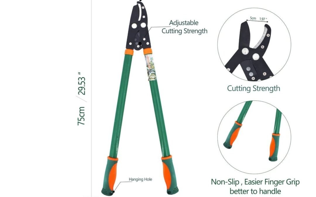 Loppers cut through thick branches up to 2 inches wide. They have long blades for heavy cutting of larger limbs that hand pruners can’t handle. People use them to shape hedges, bushes, and shrubs. Loppers are designed to cut through thick branches up to 2 inches in diameter . It has a long blade which works for heavy cutting larger limbs that hand pruners cannot handle.