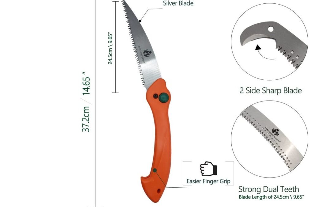 The NG-PS-1008 Pruning Hand Saw offers precise cutting work. The folding pruning saw is used to maintain hedges, small trees, and overgrown areas. The design of the pruning saw offers excellent performance during the trimming of overgrown shrubs or bushes. The strong dual teeth with a blade length of 24.5 cm 9.65″ provide ease of cutting tasks and make them easier. The tool is further excellent for outdoor tasks. For small branches, firewood cutting, or emergency repairs, the handle pruning saw is the dependable sidekick you need. The diseased or dead branches can be shifted with the help of a folding saw. Nature Gold, which has been in this line of business for many years, provides a variety of pruning saw types.